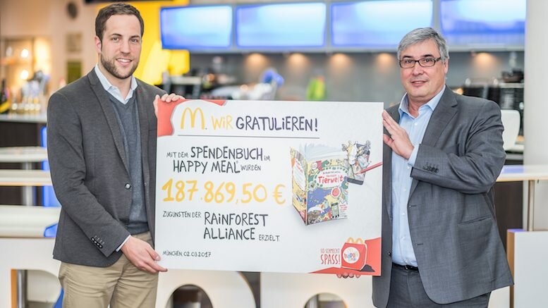 Mit Spendenbuch im Happy Meal erzielt McDonald’s Deutschland 187.869,50 Euro für die Umweltschutzorganisation Rainforest Alliance .